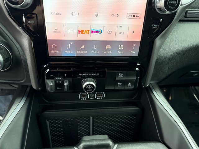 - BIG HORN LEVEL 2 EQUIPMENT GROUP -inc: SiriusXM Radio Service Power Adjustable Pedals Leather Wrapped Steering Wheel 12 Touchscreen Display Glove Box Lamp Auto Power-Folding Mirrors 115V Auxiliary Rear Power Outlet Media Hub w/2 Charge Only USBs Heated Front Seats Security Alarm Black Premium Power Mirrors Premium Overhead Console 9 Amplified Speakers w/Subwoofer Disassociated Touchscreen Display Body Color Fender Flares Remote Tailgate Release 115V Auxiliary Power Outlet LED Dome Lamp w/On/Off Switch Universal Garage Door Opener 2nd Row In Floor Storage Bins Sun Visors w/Illuminated Vanity Mirrors LED Footwell Lighting Rear Window Defroster Rear View Auto Dim Mirror Rear Power Sliding Window GPS Navigation Overhead LED Lamps Wheels: 20 x 9 Aluminum Chrome Clad (WRK) Tires: 275/55R20 OWL All Season Bridgestone Brand Tires Auto Dim Exterior Driver Mirror SiriusXM w/360L Connected Travel & Traffic Services Heated Steering Wheel Configurable Drive Mod