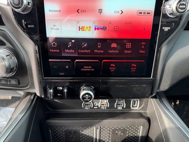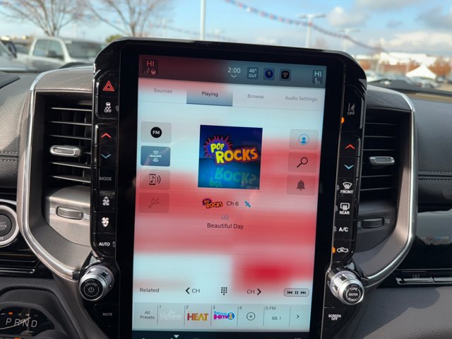 - LARAMIE LEVEL 2 EQUIPMENT GROUP -inc: Rain Sensitive Windshield Wipers 14.4 Touchscreen Display Front Passenger Interactive Display Radio: Uconnect 5 Nav w/14.4 Display harman/kardon 19 Speaker Premium Sound Cluster 12 TFT Color Display Power Tailgate