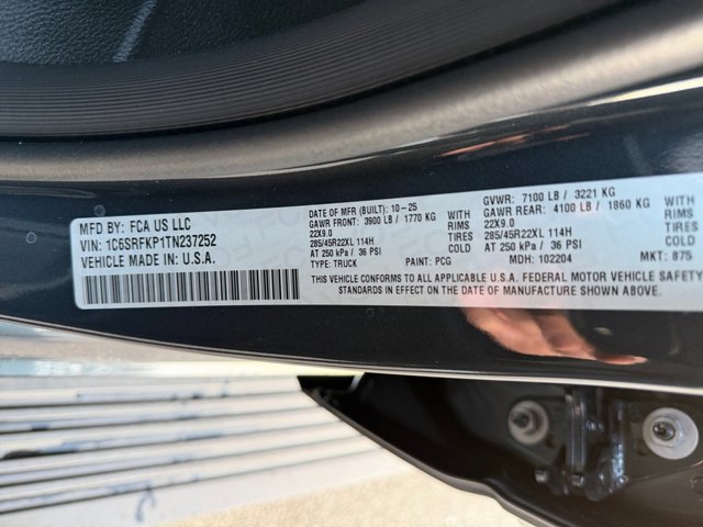- VIN : 1C6SRFKP1TN237252