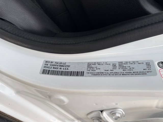 - VIN : 1C6SRFKT8NN412757
